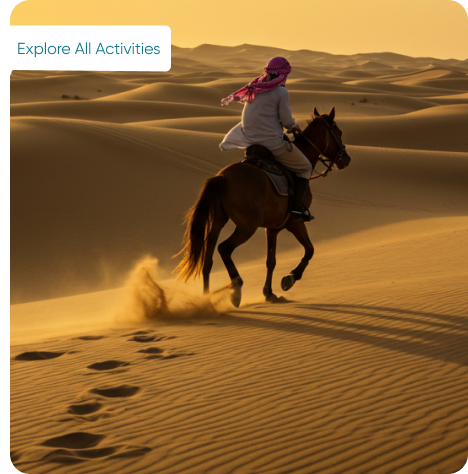 استمتع بجمال الصحراء أو دروب الطبيعة الهادئة وأنت تركب خيولًا مهيبة برفقة خبير. ستصبح المناظر الطبيعية المفتوحة ساحة لعبك.